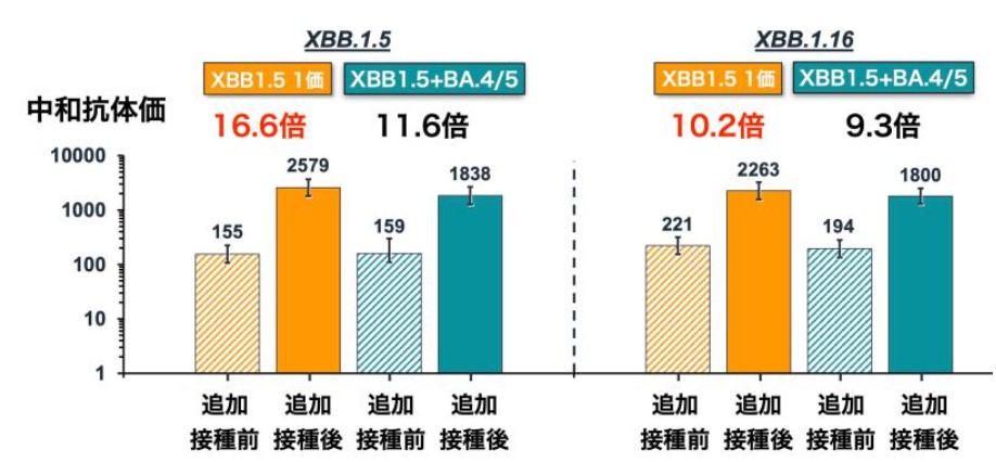 これは、現在広がっているXBB系統の変異株に対しては、2価ワクチン(XBB.1.5+BA.4/5)よりもXBB.1.5対応の1価ワクチンの方が、より多くの中和抗体を産生することが示されたためです。