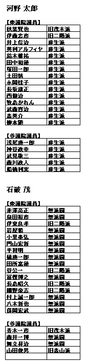 「いったん出された(党内)処分は変えるべきではない。党で正式に処分されていない議員についても役職を外されている方たちがいる。国民の一定の理解を得られた時点で適材適所の人事を行うことが大切ではないか」(8月19日、出馬表明記者会見)